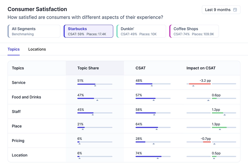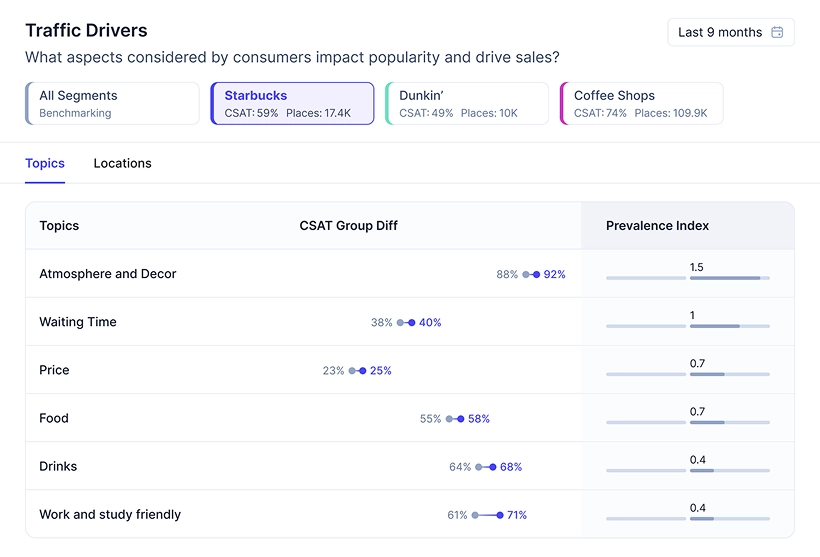From cleanliness to wait time Realytics breaks it down by topic, impact, and location